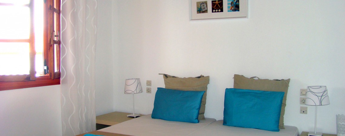 “Pasithea” is a 65 sq.meters elegantly decorated semi-detached villa, tucked into the contours of a scenic hillside just 100 meters from sea. It is blessed with the most outstanding wide angle views in the island and is a part of the Nereides Villas complex which consists of 16 traditional villas.